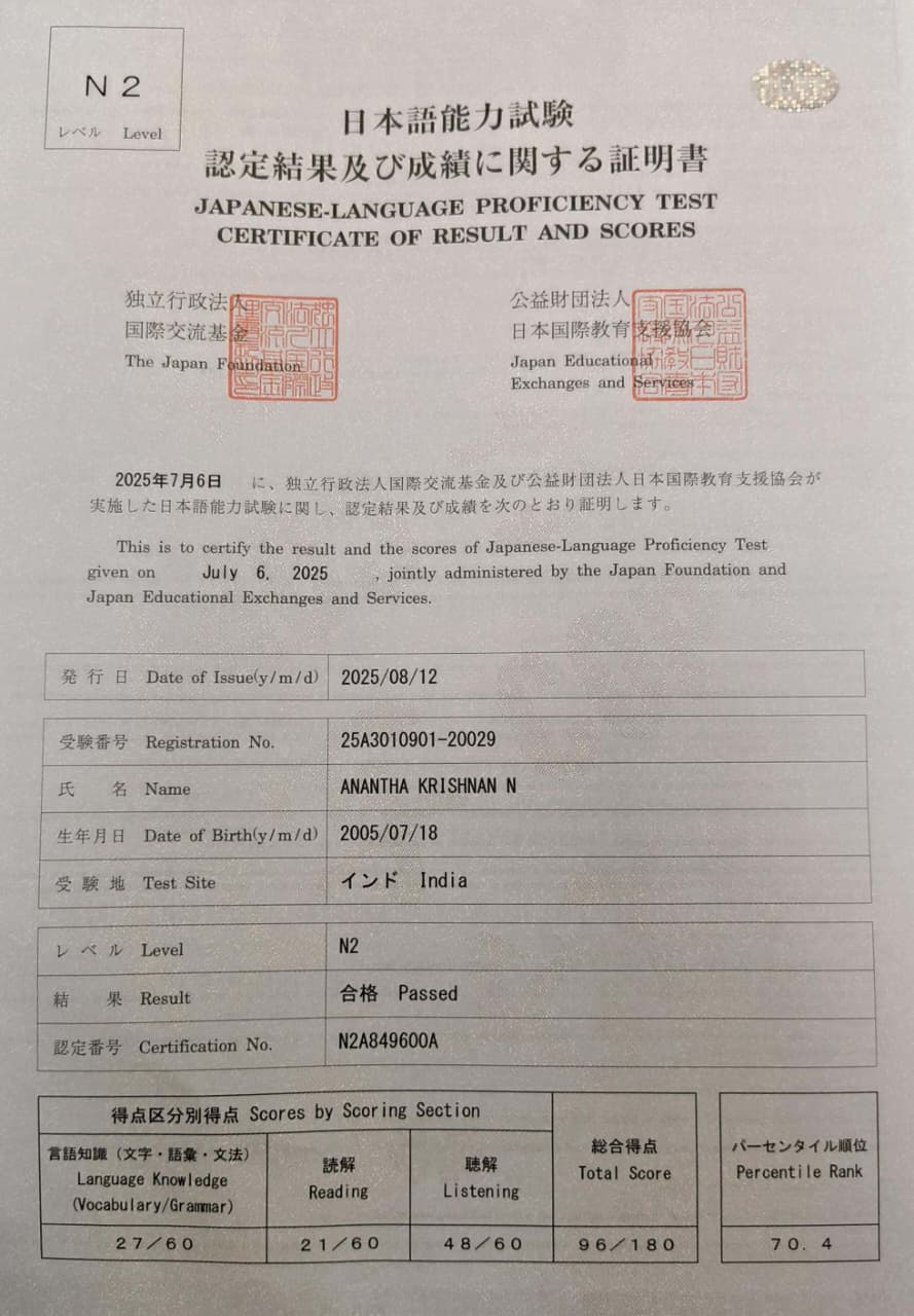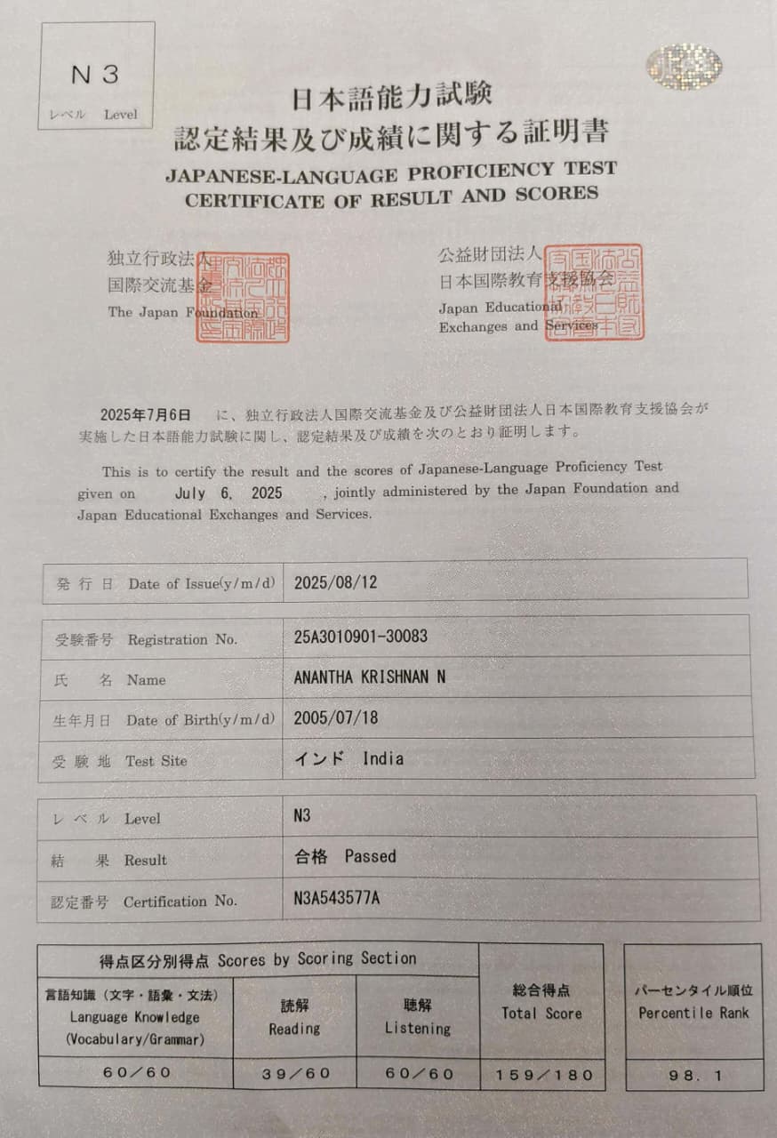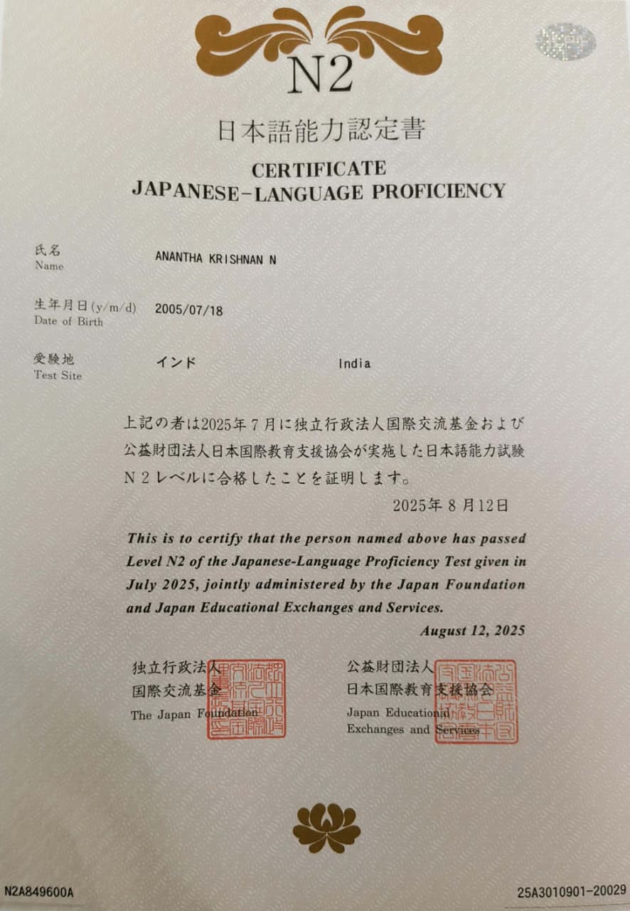 I'm particularly interested in the Japanese IT sector and have been actively working toward building a career in this space. My fascination with Japanese culture and technology has motivated me to become proficient in the language.